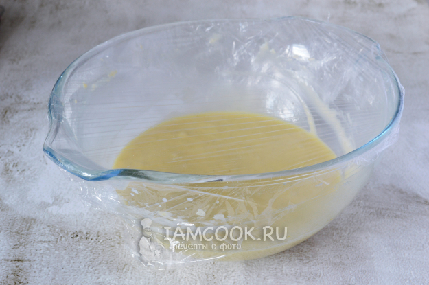 Накрыть миску с тестом пищевой пленкой и отправить в холодильник минимум на 2 часа.