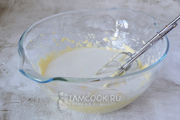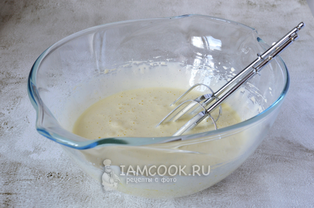 Добавить молоко и взбивать, пока тесто не станет однородным и гладким.