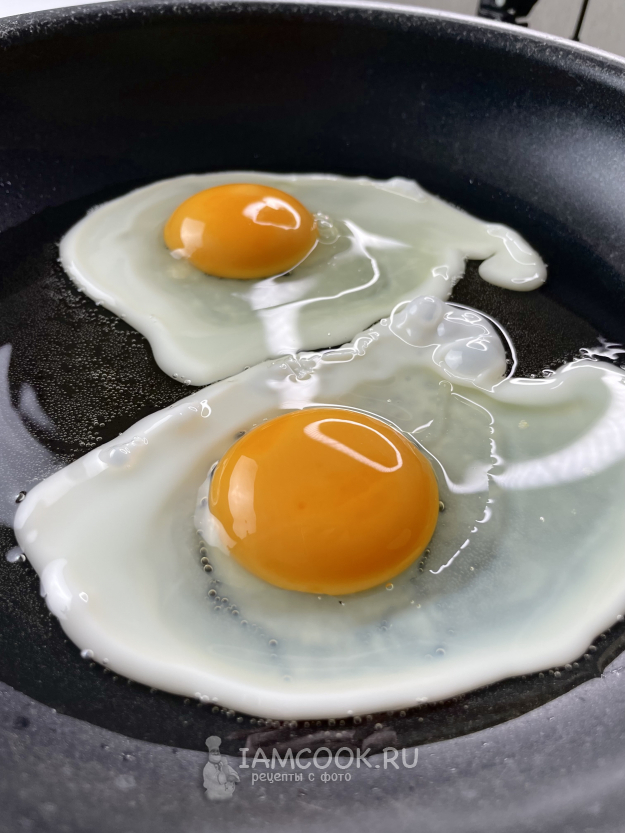 Обжариваем яйца с двух сторон на растительном масле, на среднем огне 4-5 минут.
