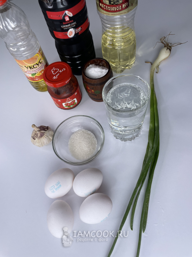Для приготовления китайской вареной яичницы соберем все необходимые ингредиенты по списку.