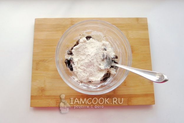 Насыпьте муку и замесите тесто.