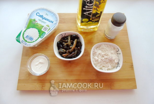 Соберите ингредиенты для приготовления сырников с грибами.