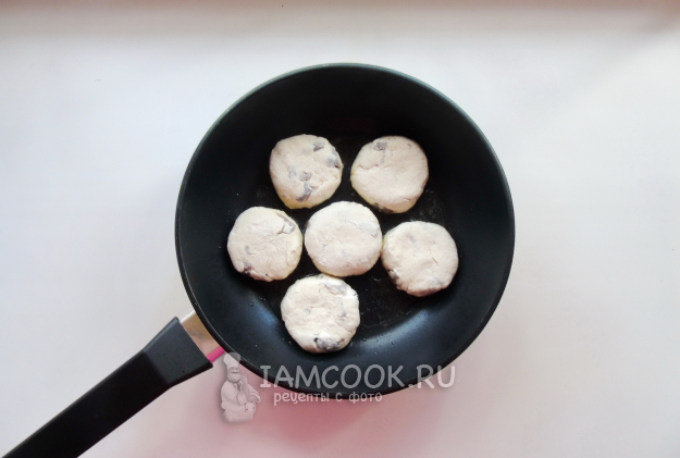 Выложите сырники на горячую сковороду с рафинированным растительным маслом.