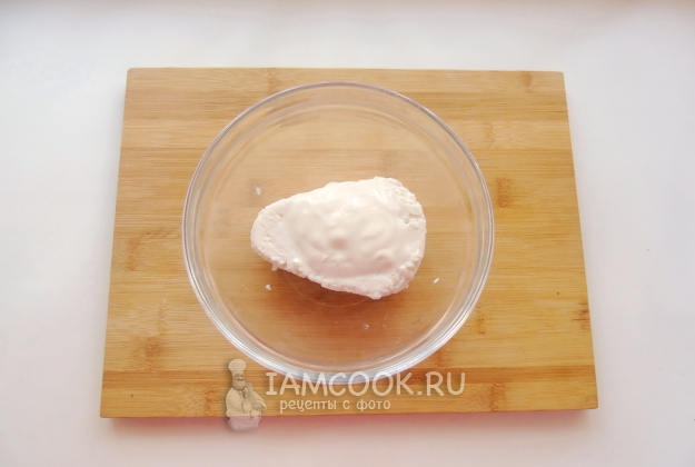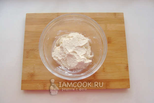 Тщательно перемешайте творог со сметаной до однородной консистенции. Можно взбить блендером.