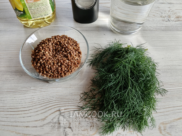 Для приготовления гречки с укропом я взяла такие ингредиенты.