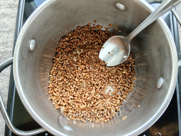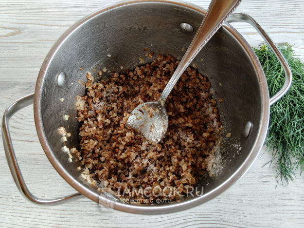 Варить до испарения влаги и готовности крупы, посолить по вкусу.