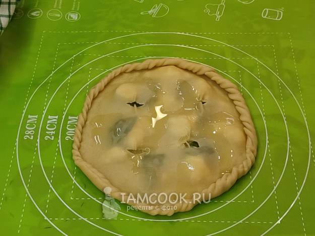 Закрепите края, сделайте несколько надрезов для выхода пара, сбрызните оливковым маслом.