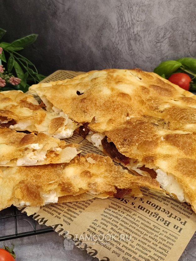 Соберите ингредиенты для приготовления фокаччи без дрожжей. В качестве начинки отлично подойдут разнообразные мягкие сыры, можно использовать тонко-тонко нарезанную ветчину, у меня сегодня рикотта и вяленые томаты.