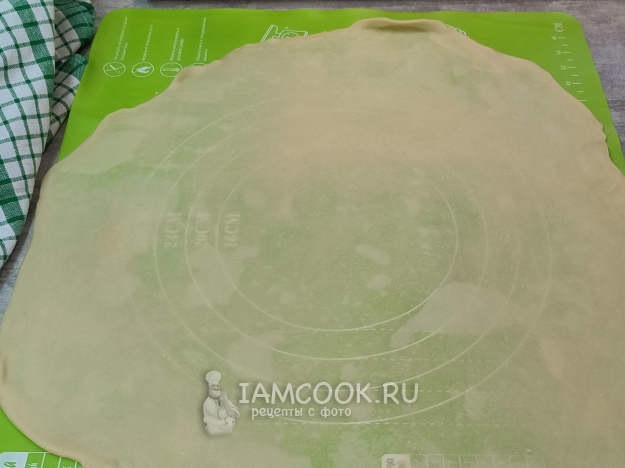 Раскатайте каждую часть в тонкий пласт.