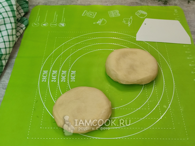 Отдохнувшее тесто разделите на части. Я сначала хотела сделать одну большую, поэтому разделила на 2 части.