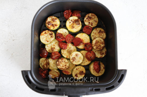 Ну вот, собственно, и все! У нас готов идеальный вариант для легкого ужина или обеда. Будь это закуска, салат или основное блюдо, тут уже каждый сам для себя определится. А как по мне, запеченные в аэрогриле кабачки с помидорами и сыром - это самый вкусный и полезный прием пищи), так как кабачки и помидоры являются низкокалорийными диетическими продуктами. Удачи вам и приятного аппетита.