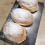 Эклеры разрезаем пополам и начиняем кремом. Убираем в холод для застывания.