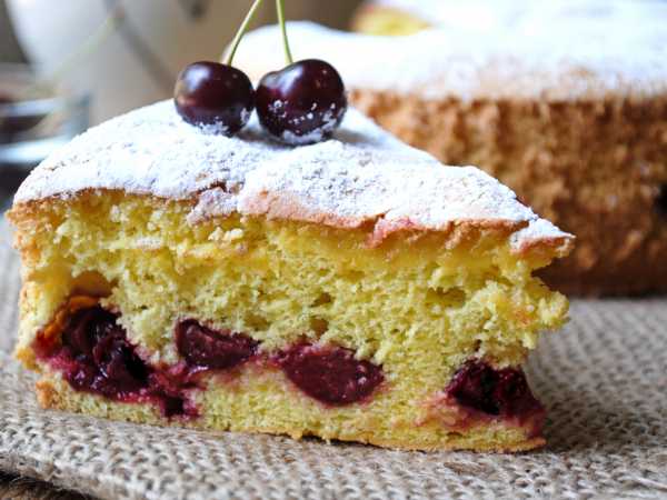 Покройте тесто приготовленной начинкой из вишни.
