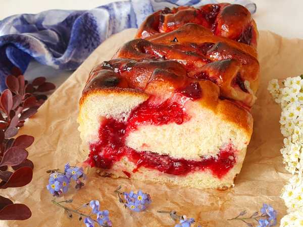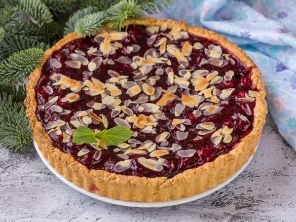Рассыпчатый, нежный и вкусный песочный пирог-плетенка с вишней готов.
