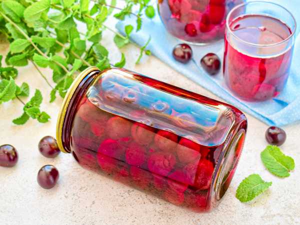 В жару компот из вишни с мелиссой - то что нужно. Компот вкусный, кисло-сладкий, насыщенный, мелисса придает освежающую нотку напитку.