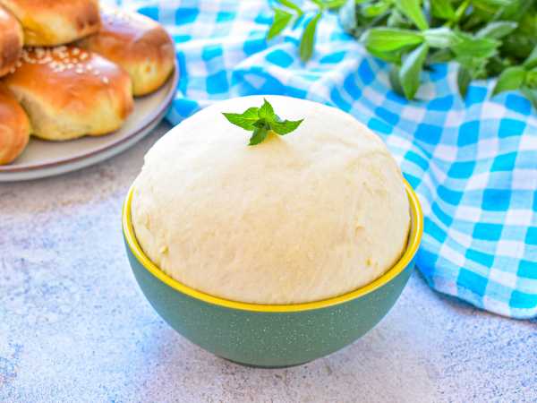 Первым делом для приготовления жареных пирожков на кефире с печенью надо замесить тесто.