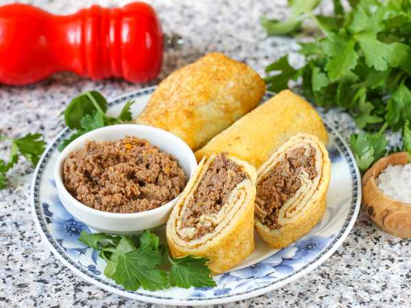 Перемешать. Если начинка сильно рассыпчатая, можно добавить немного воды или мясного бульона (если есть).