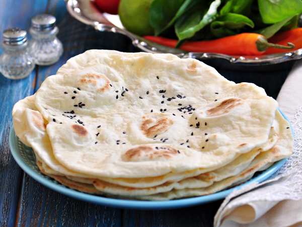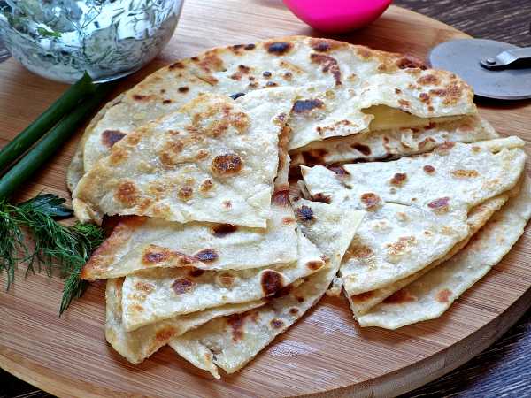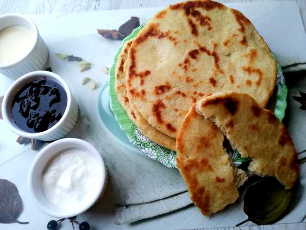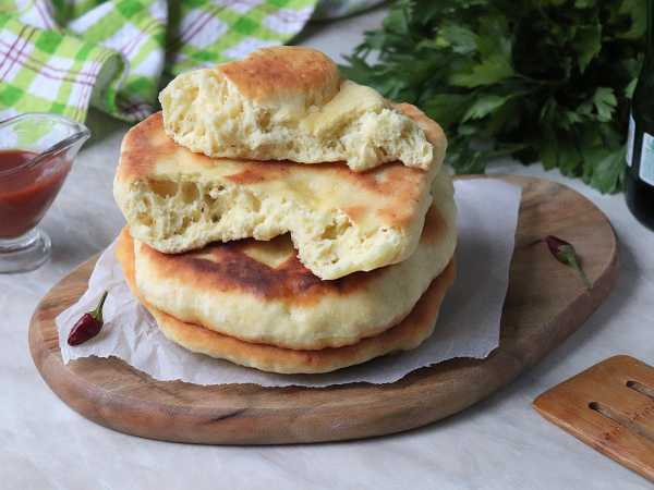 4 лепёшки я выпекала на сухой сковороде - минуту-полторы, часто переворачивая, на среднем огне.