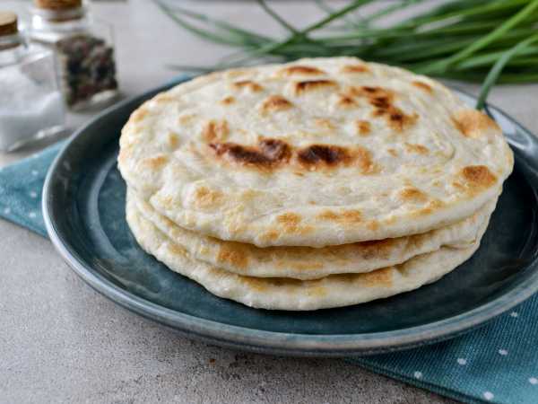После каждой лепёшки надо убирать салфеткой муку со сковороды, чтобы она не горела. Выкладывать лепёшки на полотенце, чтобы не отсырели.