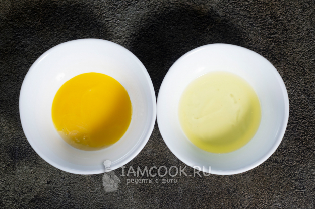 У одного яйца аккуратно отделите белок. Желток нам не понадобится.