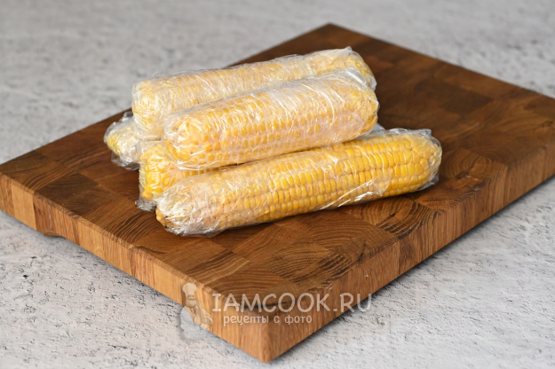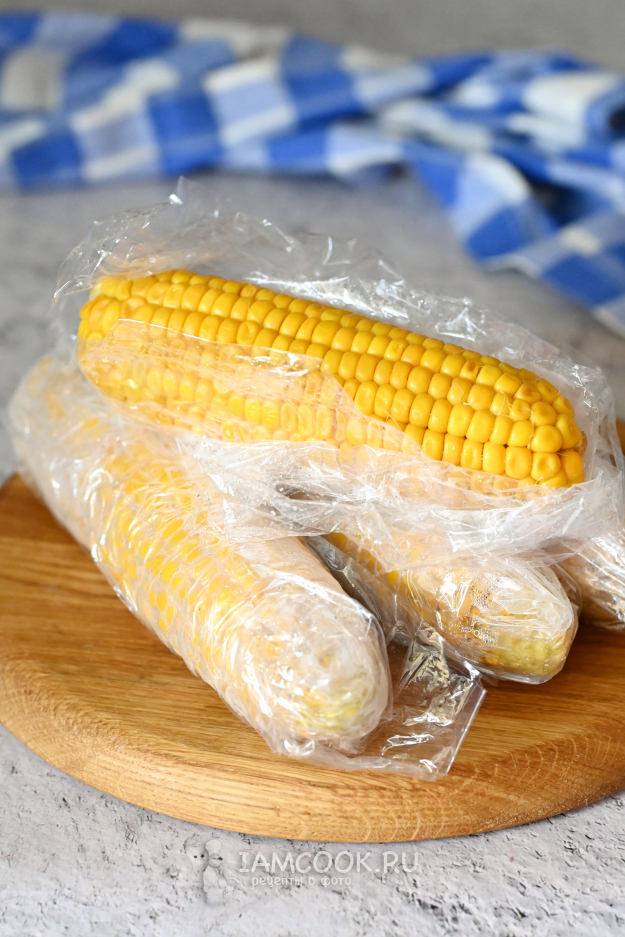 Когда зимой вы захотите свеженькой кукурузы в початке, просто удалите с початка плёнку и залейте его кипятком. Оставьте початок в кипятке на 3-5 минут, чтобы кукуруза прогрелась, и можно наслаждаться. Либо можно отварить замороженный початок в кастрюле около 2-3 минут.