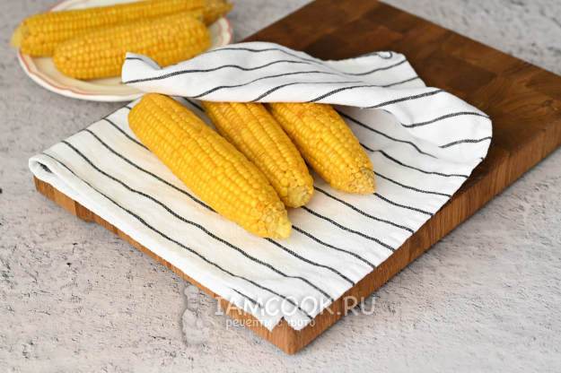 Вареные кукурузные початки остудите полностью перед закладкой в морозилку и промокните полотенцем, чтобы убрать лишнюю влагу. Если на початках кукурузы останется вода, то в морозилке на них образуется ненужная ледяная "шуба", а это ухудшит вкус.