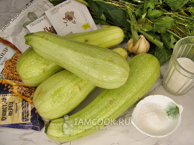 Соберём продукты для приготовления маринованных кабачков по-болгарски на зиму.