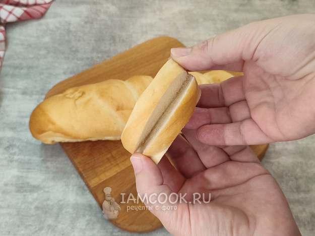 Из багета нужно сделать "кармашки". Делаем первый надрез почти до конца.