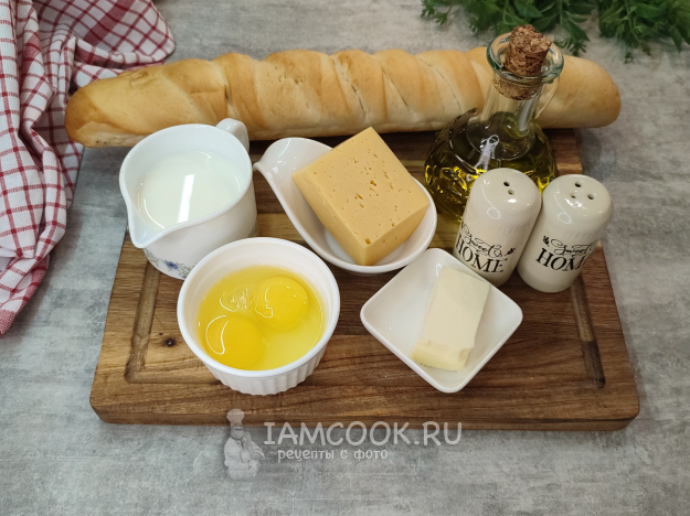 Соберите ингредиенты для приготовления французских тостов с сыром. Сыр берите любой, какой вам нравится, главное, чтобы он хорошо плавился.