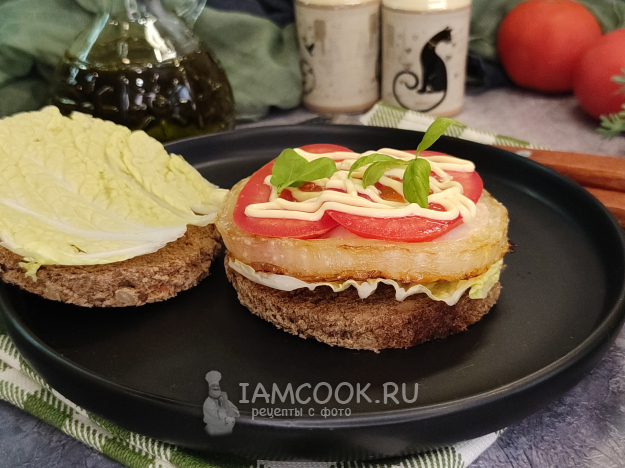 Выложите на хлеб зеленый салат или лист пекинской капусты, например, добавьте ломтик помидора, яичницу в луке, любой ваш любимый соус, и питательный и вкусный завтрак у вас на столе.
