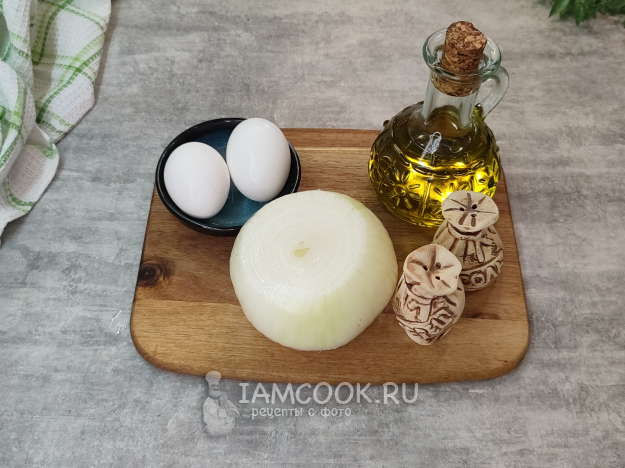 Соберите ингредиенты для приготовления яичницы в луке. Луковицу берите крупную.