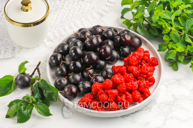 Продукты для приготовления компота из алычи и малины на зиму - перед вами!