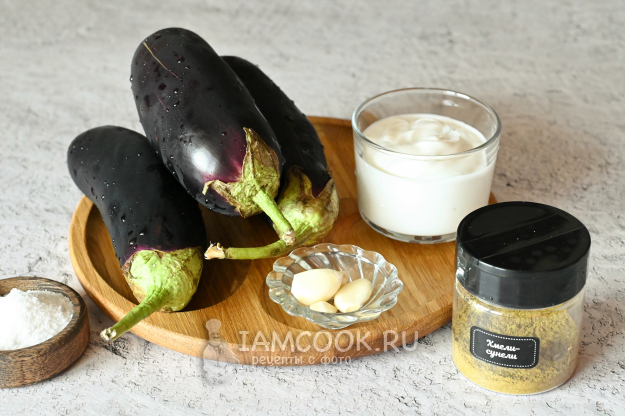 Соберите все необходимые продукты для запекания баклажанов с греческим йогуртом.