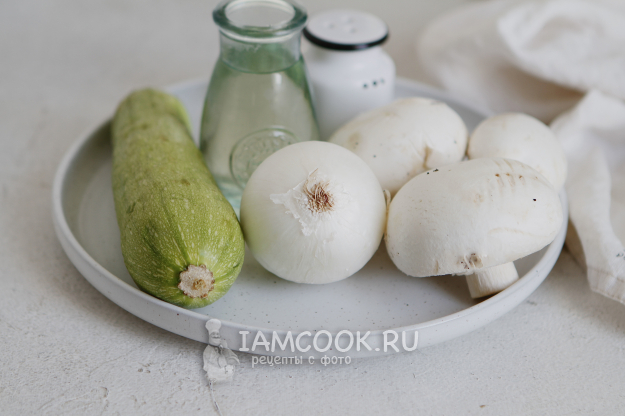 Соберите все продукты по списку и приступим к приготовлению спагетти из кабачков с грибами.