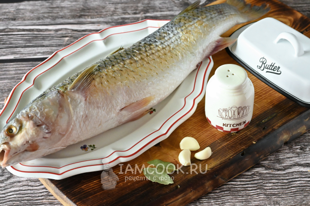 Кефаль очистите от чешуи, удалите внутренности и промойте, удаляя все плёночки. Тщательно промокните рыбку салфеткой снаружи и внутри.