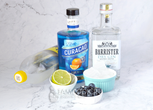 Соберите необходимые ингредиенты для приготовления коктейля Голубой джин-тоник. Все напитки лучше заранее хорошо охладить.