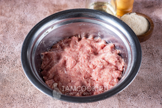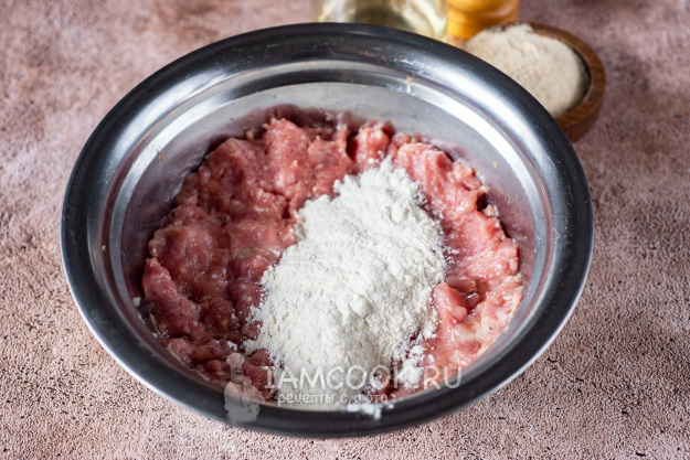 Вмешайте муку ложкой. Дайте фаршу в миске постоять в холодильнике 30 минут.