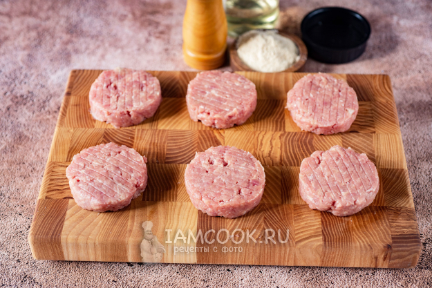 Затем приступайте к лепке котлет. Формируйте котлеты из всего приготовленного фарша привычным вам способом, я сегодня воспользовалась специальным прессом для котлет.