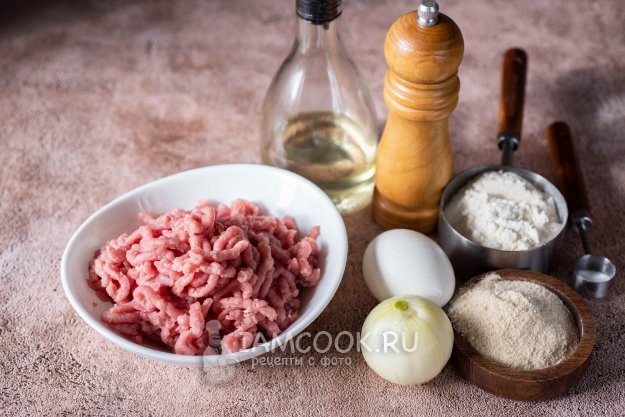 Все ингредиенты для приготовления мясных котлет в мультипекаре соберите по списку. Луковицу заранее почистите.
