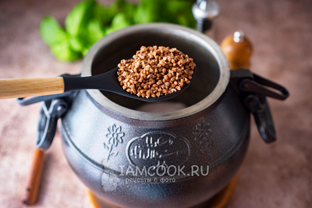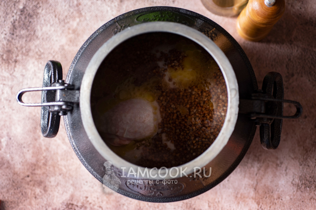 Поверх выложите промытую гречку.