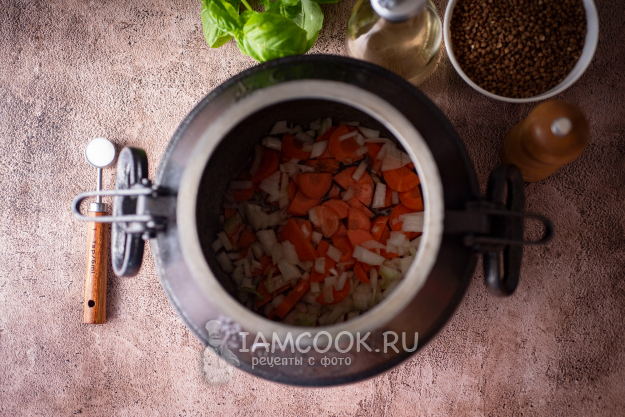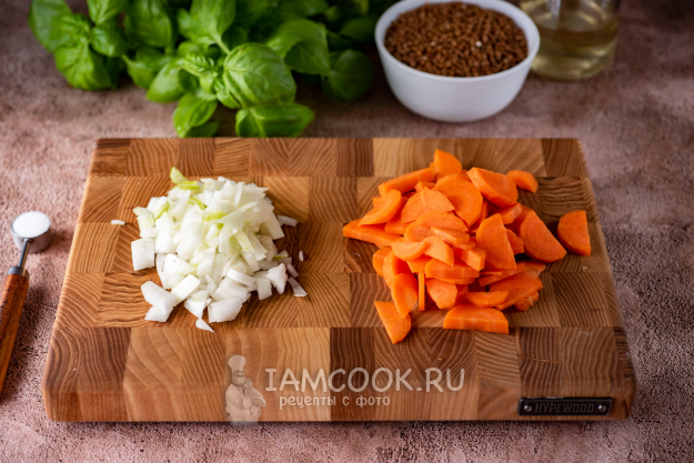 Все ингредиенты соберите по указанному списку. Морковь и лук почистите и помойте. Гречку, если надо, переберите, а затем промойте в нескольких водах.