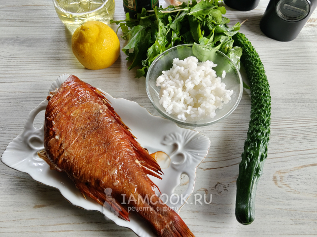 Для приготовления салата с хрустящим рисом возьмите необходимые ингредиенты по списку.