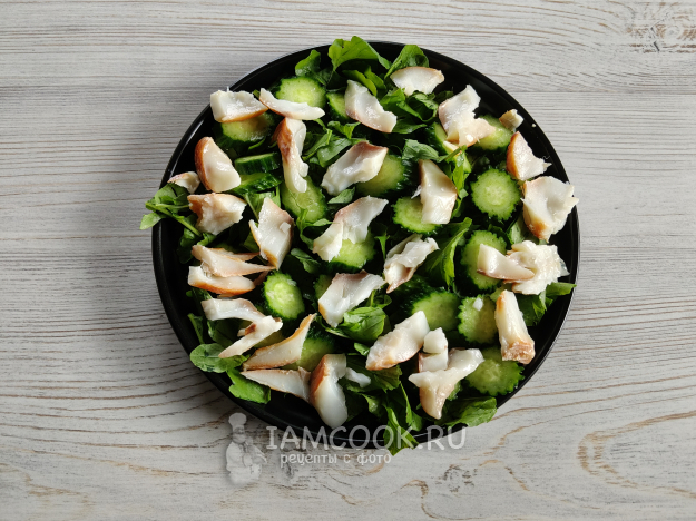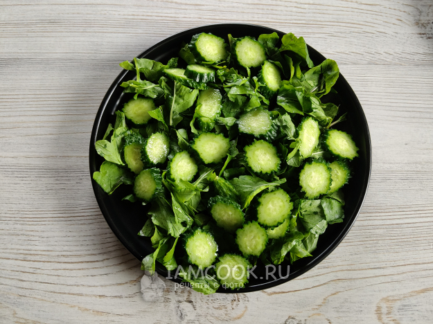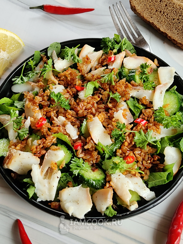 Посыпать салат рисом, и можно подавать - салат с хрустящим рисом готов.
