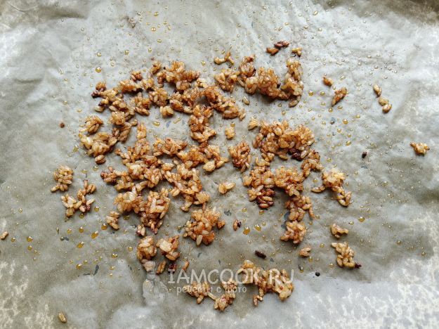 Поставить в горячую духовку (180 градусов) и сушить до хрустящего состояния, минут 7-8, в процессе можно перемешать.