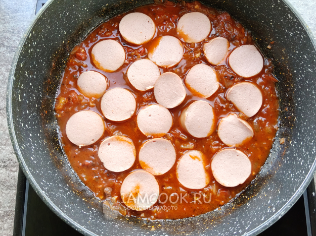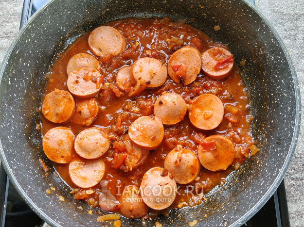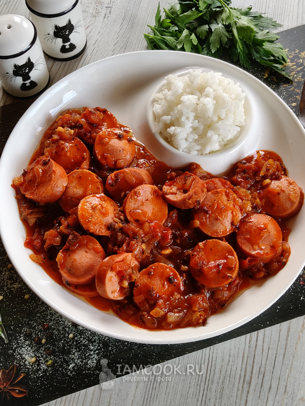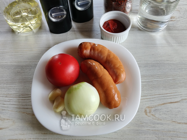 Сардельки в томатном соусе на сковороде готовить будем с такими ингредиентами.