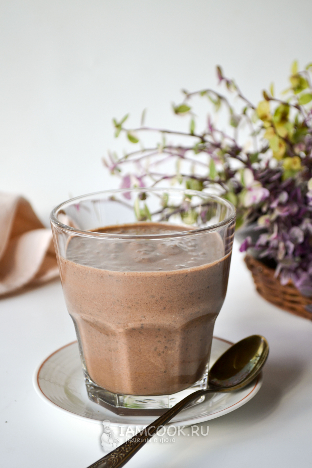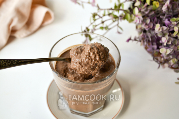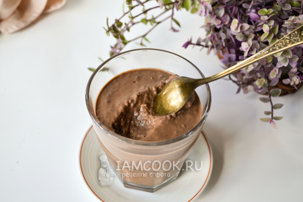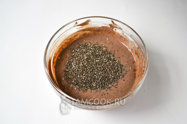 За ночь семена чиа разбухли, жидкая шоколадная масса превратилась в густую желеобразную.