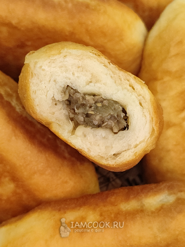 Начинки в пирожки я не жалею, кладу довольно много)), но здесь на фото специально отщипнула с самого края, где теста больше всего, чтобы вы увидели, насколько воздушным и пушистым получилось заварное дрожжевое тесто для пирожков 😉.