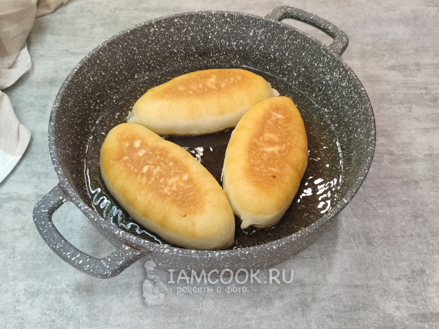 Я печеные пирожки не люблю, как-то не сложилось с детства. Поэтому жарю в сковороде. Масла в сковороде должно быть достаточно, по уровню доходить примерно до середы пирожка. Выкладываем пирожки в разогретое масло и на среднем огне (6 из 9) обжариваем до румяности с обеих сторон.