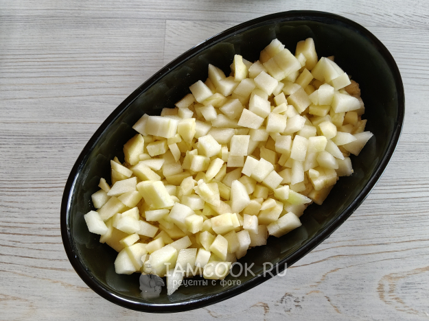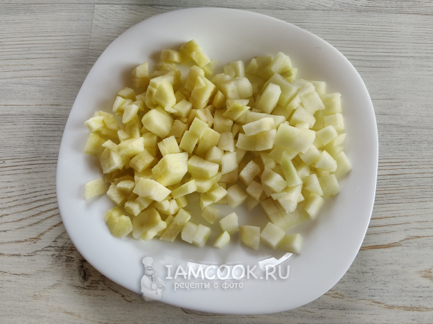 Фрукты почистить, нарезать мелкими кубиками.
