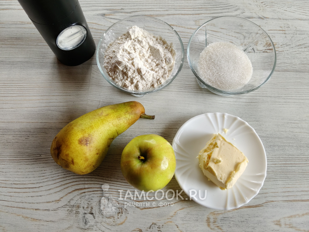 Яблочно-грушевый крамбл готовить будем из таких ингредиентов.